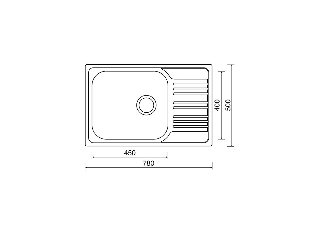 Vonkajšie rozmery drezu: 780 x 500 mm