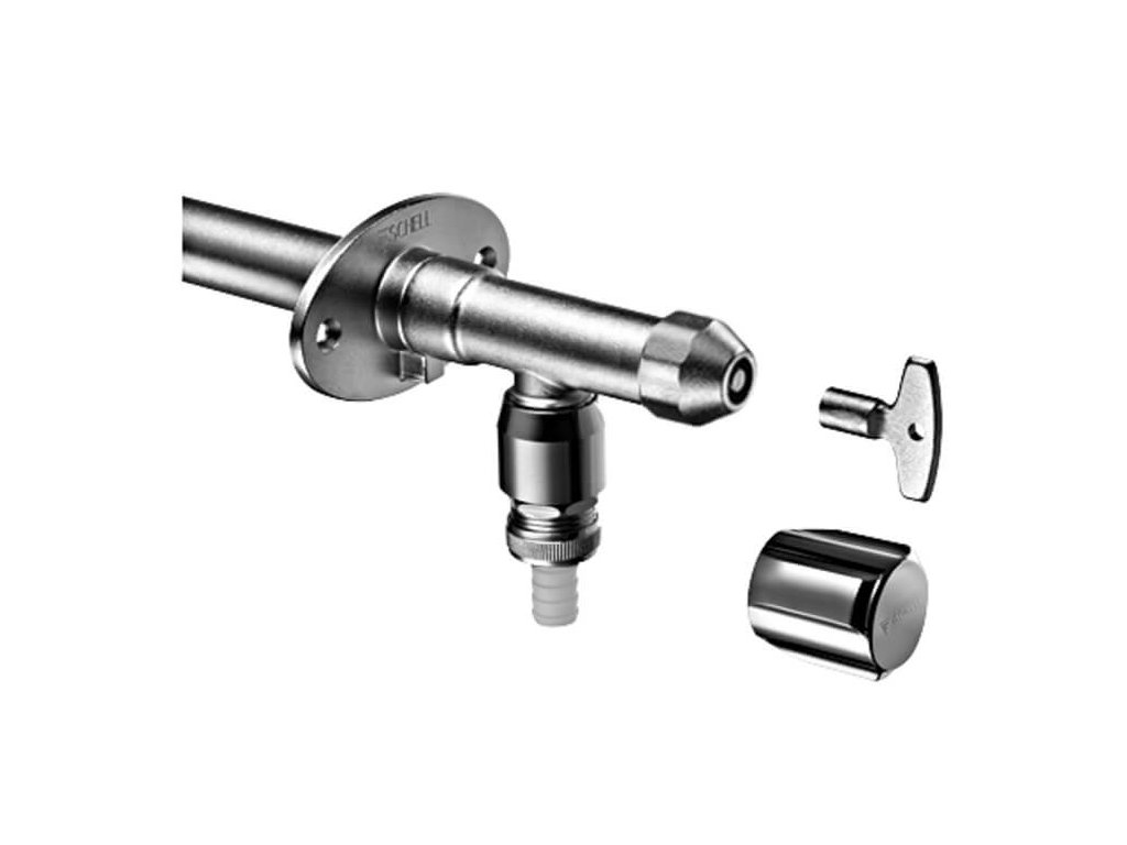 Kompletná armatúra k dodatečnej montáži. Protimrazové ventilové sedlo 200 mm z prednej hrany fasády. Automatické nútené privzdušnenie vnútorného potrubia pri každom procese uzatvorenia.