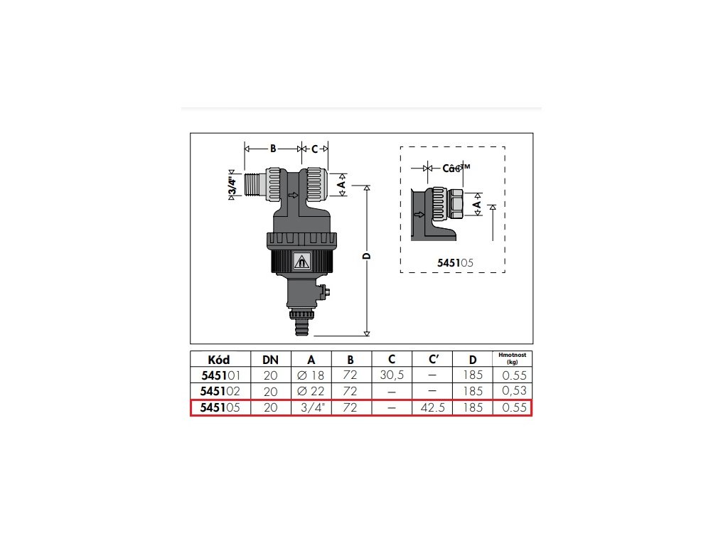 Odkaľovač s magnetom DIRTMAGSLIM, pod bojler - 3/4”M x 3/4”F
