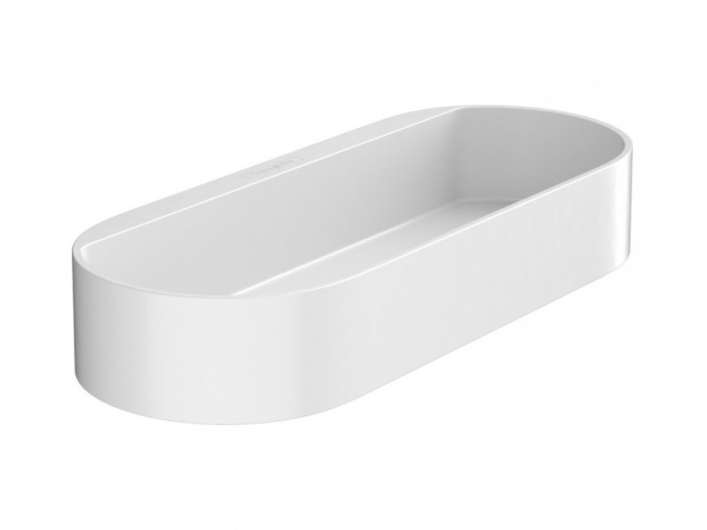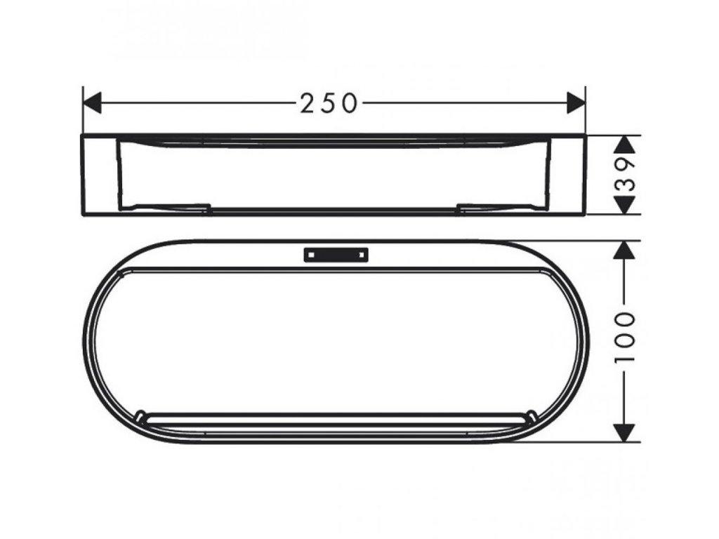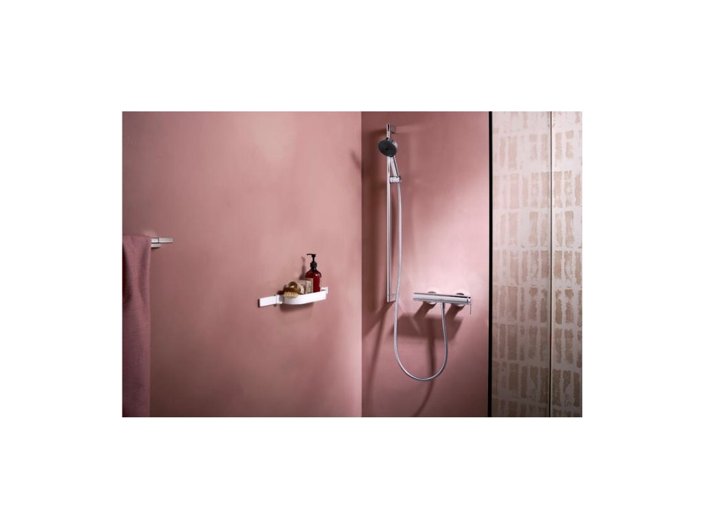 Plytšia odkladacia polička zo série WallStoris značky Hansgrohe. Ideálny pomocník pre uloženie stierky, šampónu, sprchového gélu či holenia.