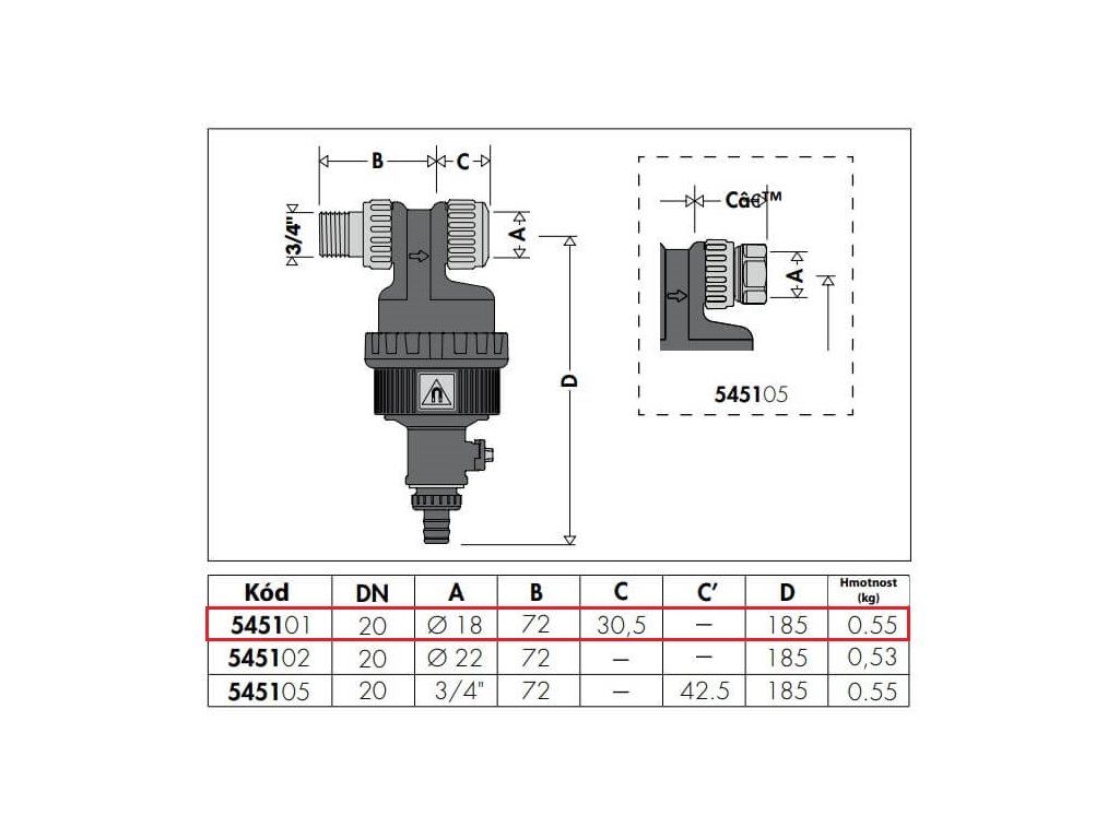 Napojenie: DN 20, 3/4” M x O 18.