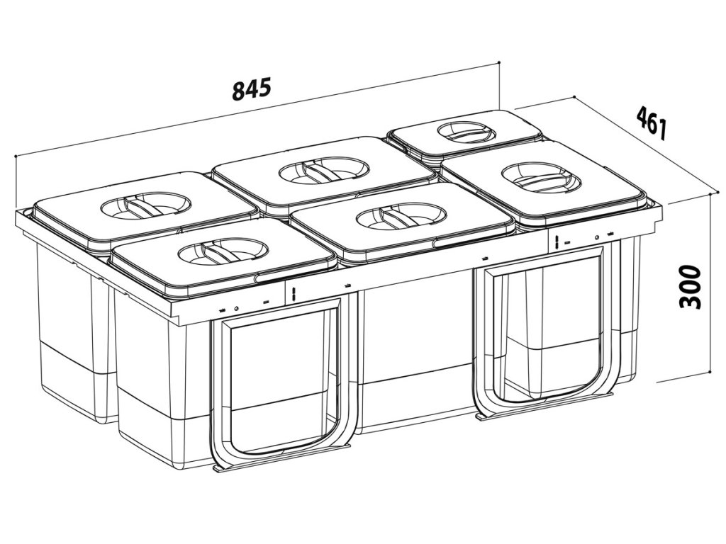 Vonkajšie rozmery: 300 x 845 x 461 mm.