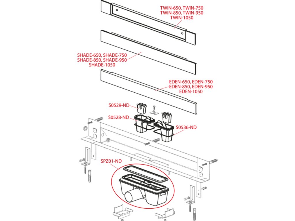 Odtokový systém SPA pre zabudovanie do steny, rošt TWIN - 750mm