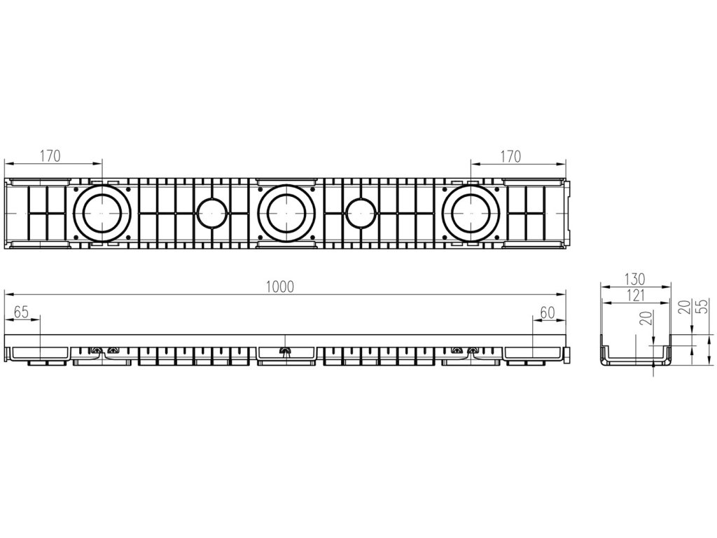 Odtokový žľab vonkajší, znížený, s liatinovou mriežkou, dĺžka 1000mm