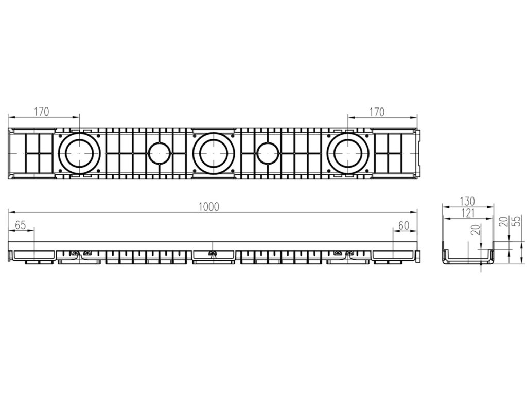 Odtokový žľab vonkajší, znížený, s plastovou mriežkou, dĺžka 1000mm