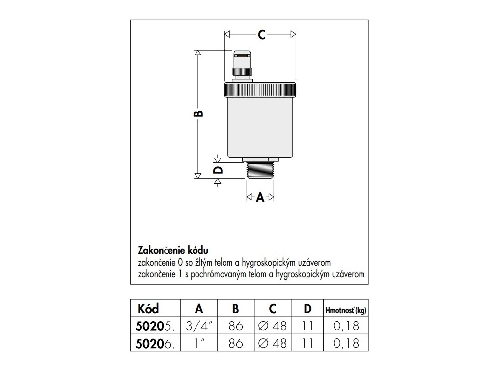 Odvzdušňovací ventil automatický MINICAL priamy 1"M, PN10