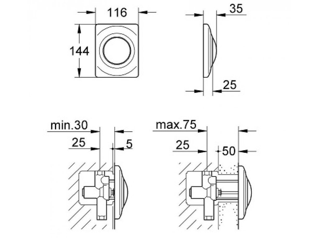 Ovládacie tlačidlo Surf značky Grohe, s tlačidlovým ovládaním.