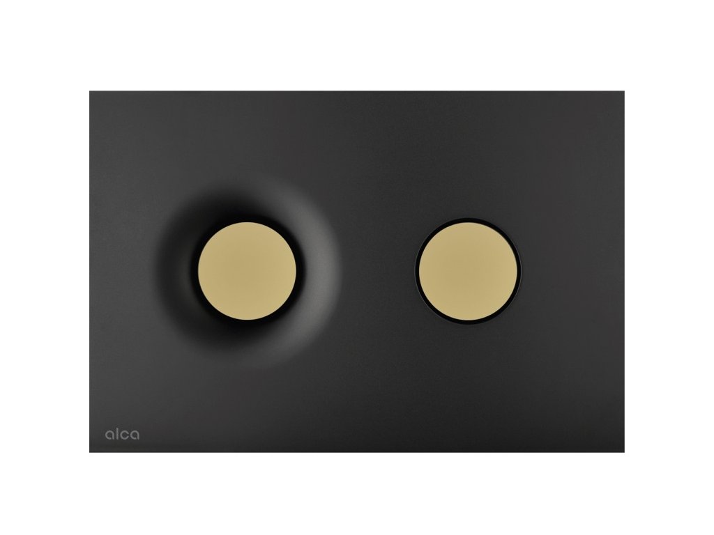 Máte dosť obyčajných tlačidiel na splachovanie? Radi by ste priniesli do vašej kúpeľne či toalety trochu elegancie a šmrncu? Potom vás isto osloví ovládacie tlačidlo Alca. Jeho nadčasová matná čierna farba kombinovaná so zlatou okamžite pritiahnu vašu pozornosť a to aj napriek ultra tenkému dizajnu, vďaka ktorému tlačidlo nebude rušivo vyčnievať nad obklad.