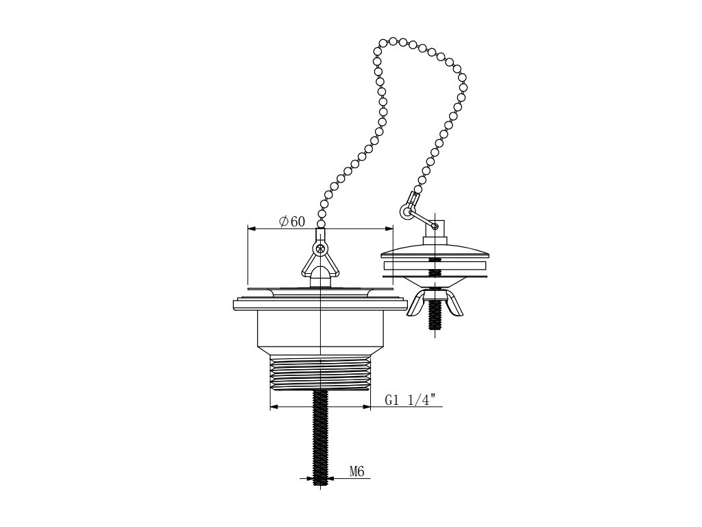 Umývadlová klik pileta s gumennou zátkou a s retiazkou, G 5/4“, značky Aquaristo Style.