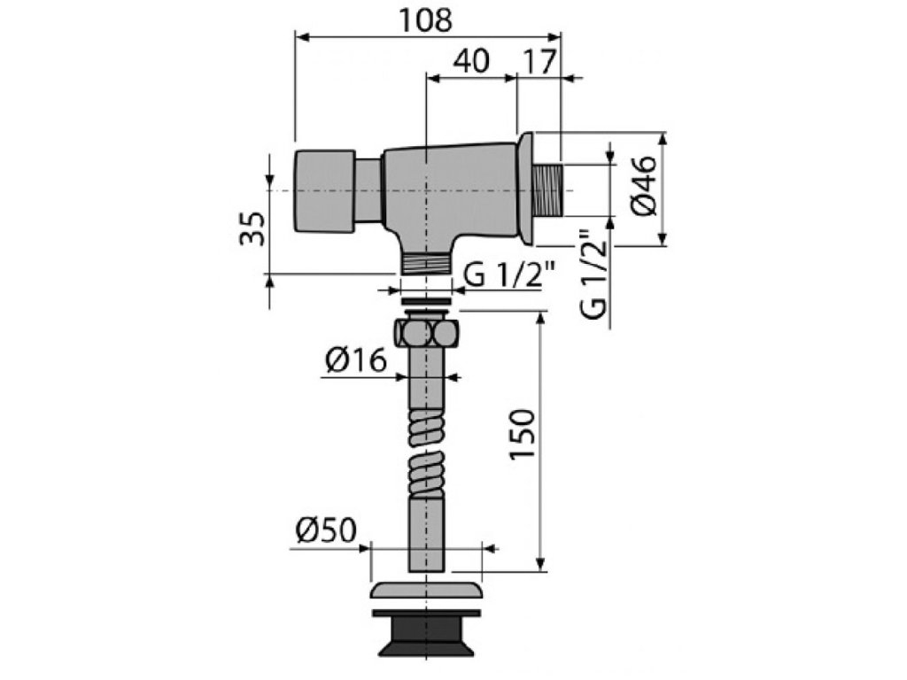 Splachovač na pisoár tlakový, nadomietkový, kov - chróm