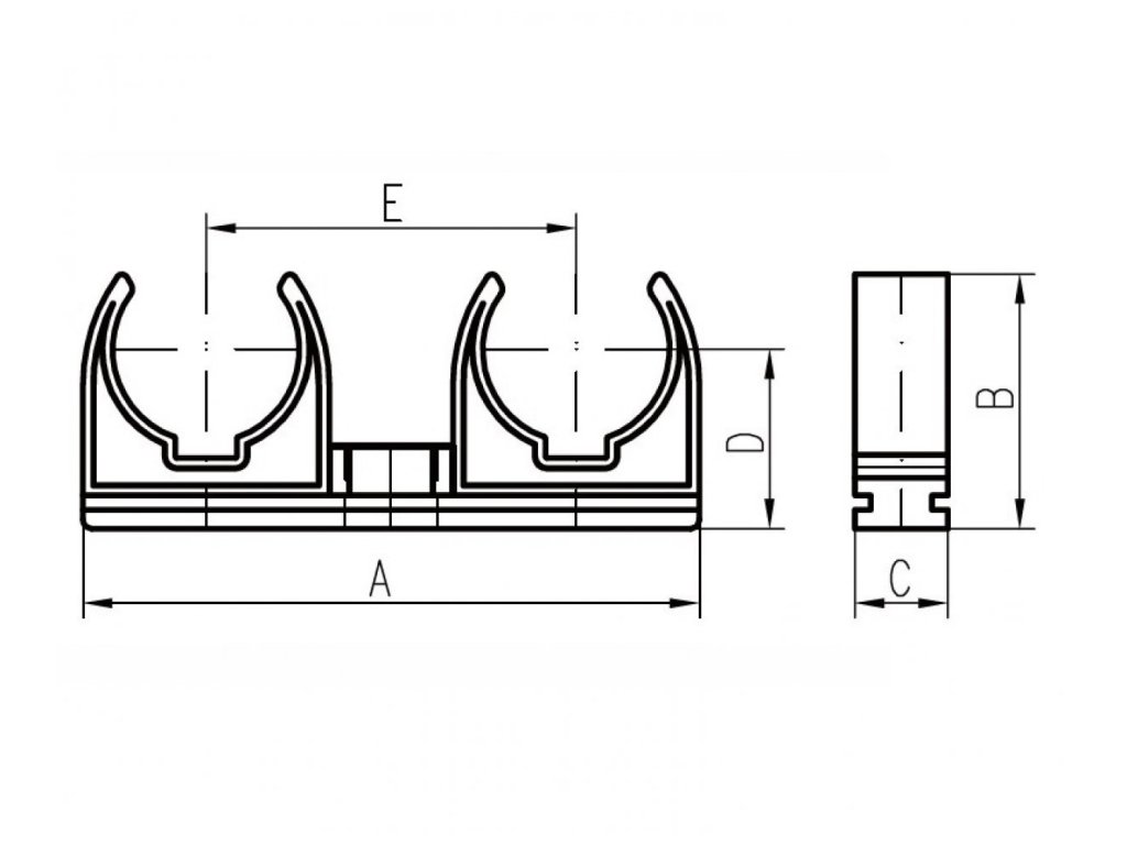 Dvojpríchytka na potrubie, biely plast - 2x25mm