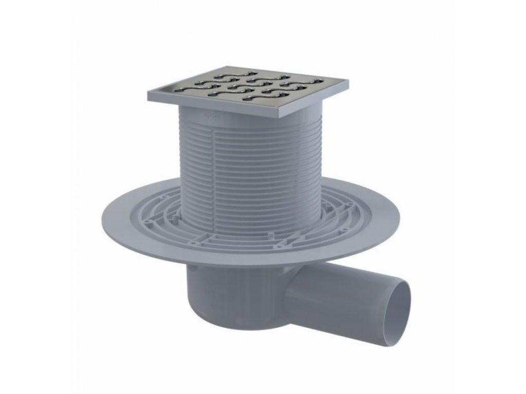 Podlahová vpusť 105×105/50 mm bočná, mriežka nerez, vodná zápachová uzáveraPoužitie: