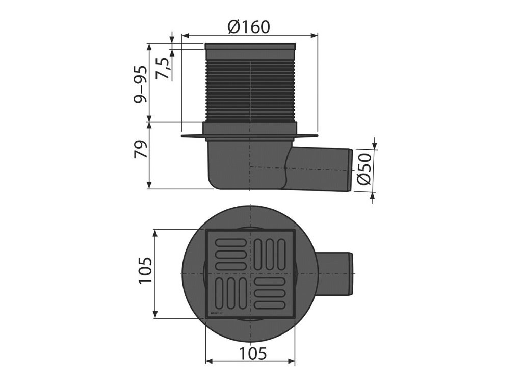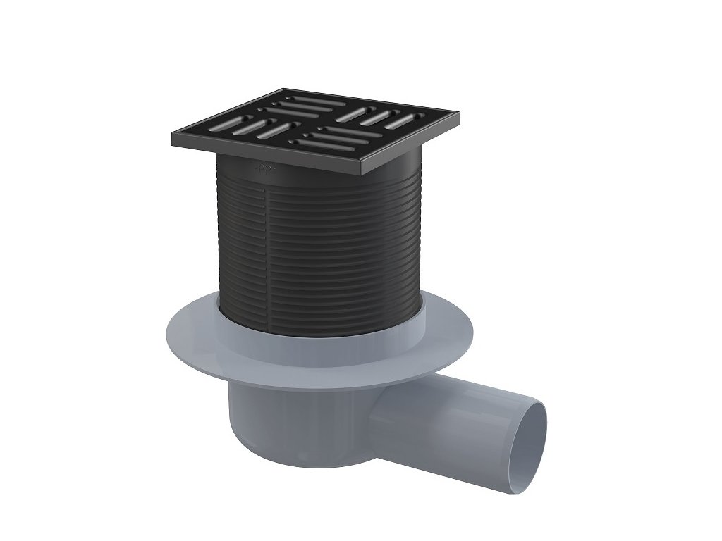 Podlahová vpusť bočná, DN50, mriežka čierna 105mm, uzávera Smart
