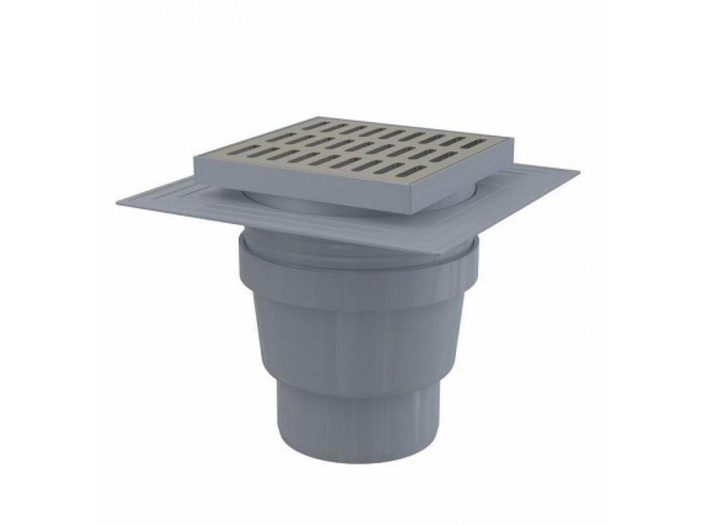 Podlahová vpusť 150×150/110 mm priama, mriežka nerez, límec 2. úrovne izolácie, vodná zápachová uzáveraPoužitie: