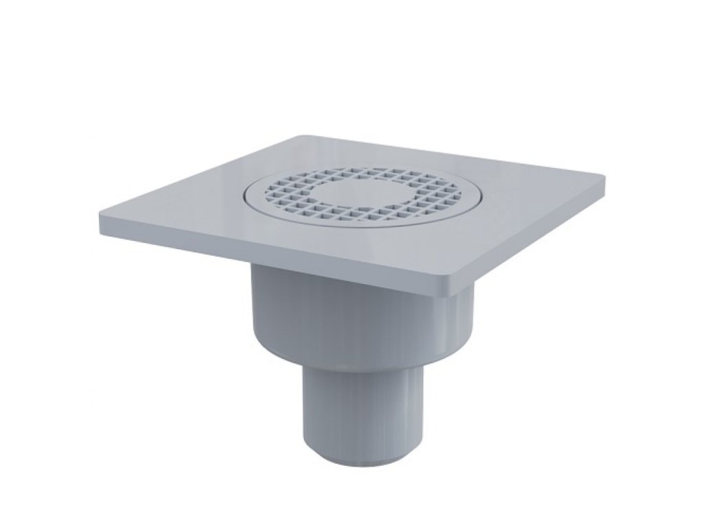 Podlahová vpusť 150×150/50 mm priama, mriežka šedá, vodná zápachová uzáveraPoužitie: