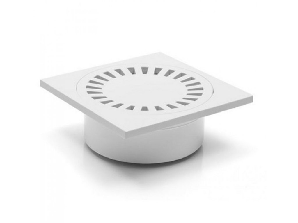 Spodná podlahová vpusť značky Chuděj, s vodnou hladinou, s plastovou mriežkou 150x150mm, DN50/55. Farba: biela.