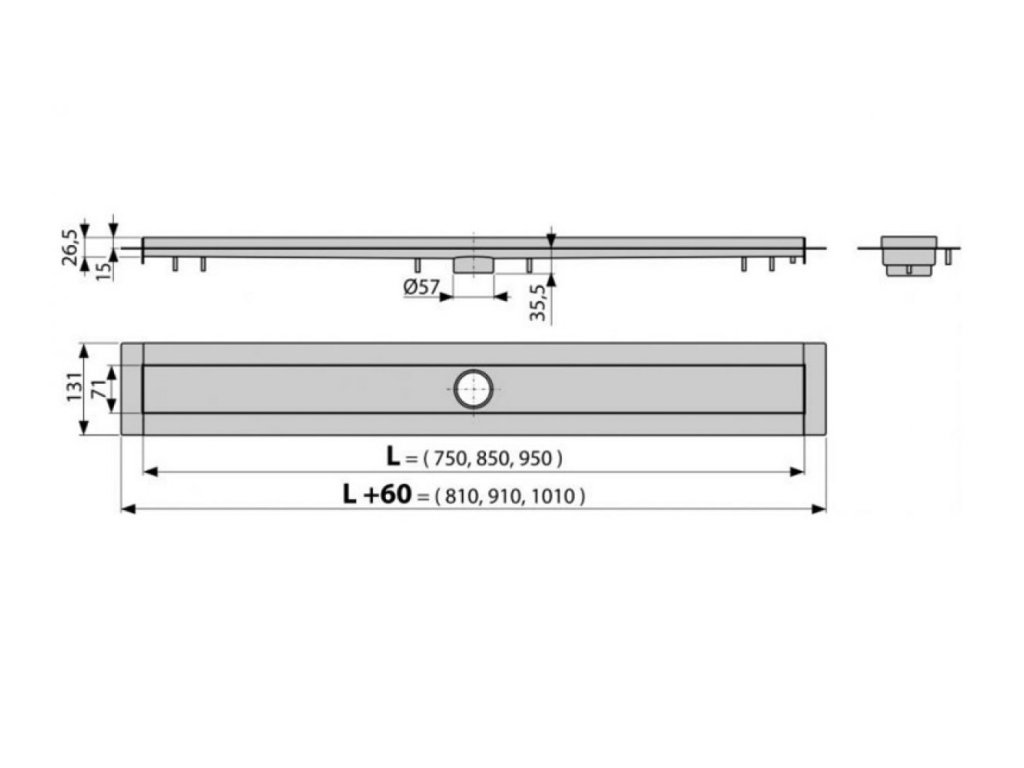 Sprchový žľab MODULAR nerezový - dĺžka 750mm