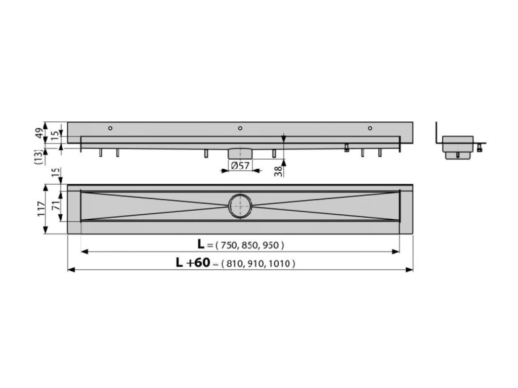 MODULAR WALL - podlahový žľab značky Alcaplast, dĺžka 750mm, nerez