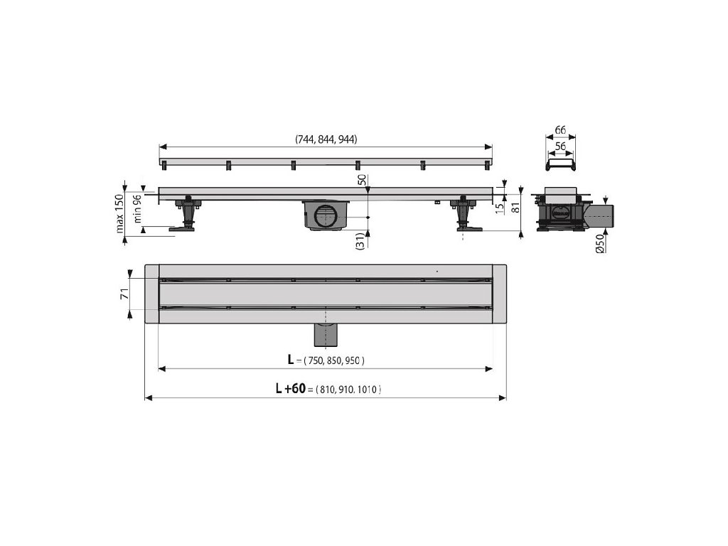 Celková stavebná výška 96-150 mm