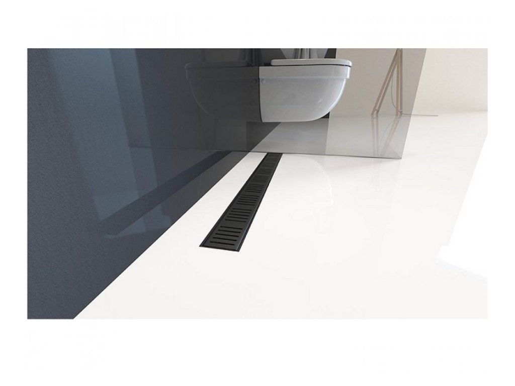 Podlahový žľab s okrajom pre perforovaný rošt, matná čierna farba.