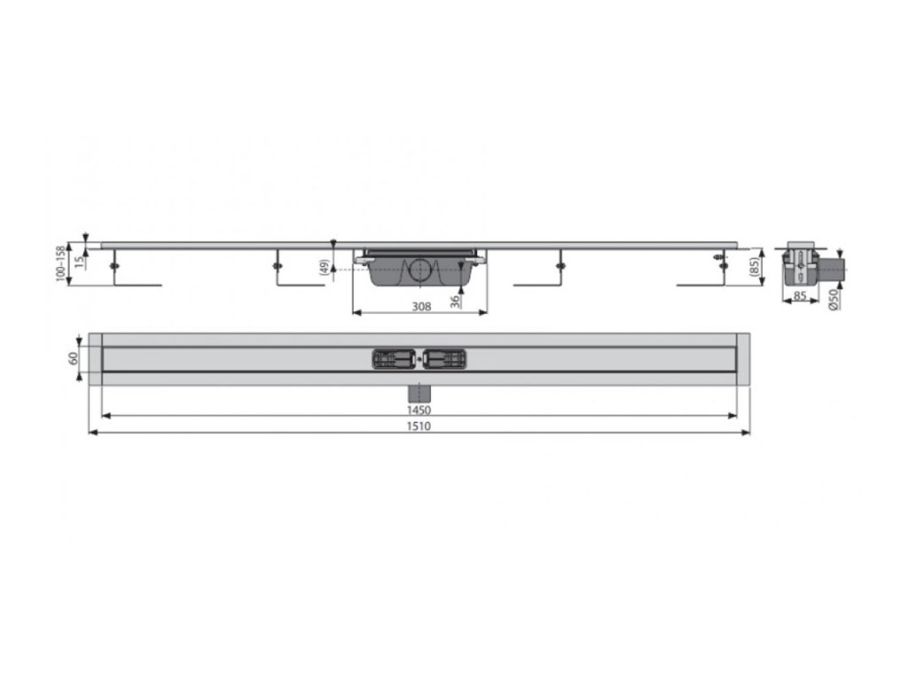 Sprchový žľab nerezový, s okrajom pre perforovaný rošt - dĺžka 1450mm