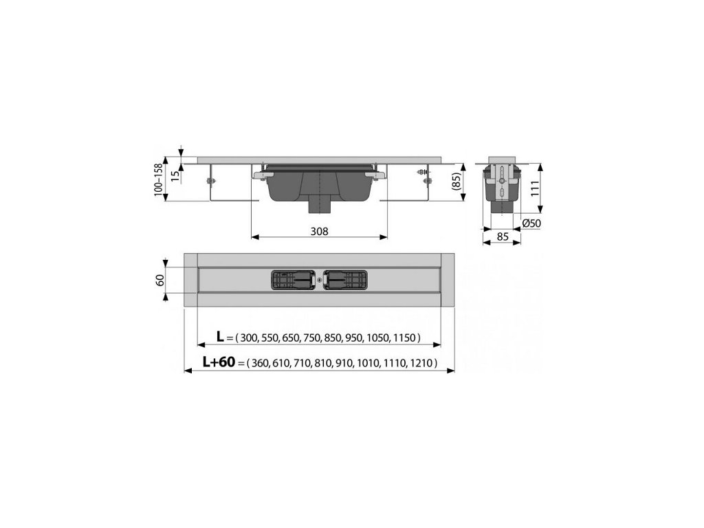 Sprchový žľab s okrajom pre perforovaný rošt, zvislý odtok - 1050mm