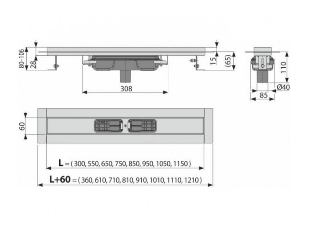 Sprchový žľab PROFESSIONAL LOW, okraj pre plný, zvislý odtok - 850mm
