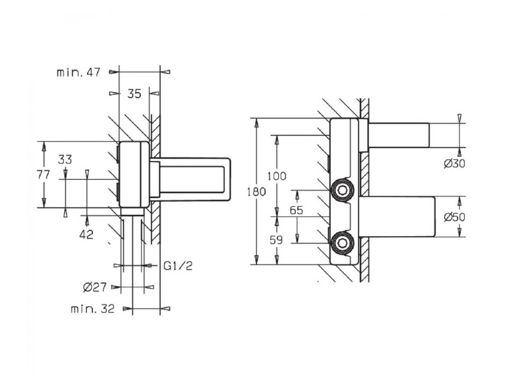 Podomietkové teleso HANSAVARIO pre 2-otvorové nástenné batérie