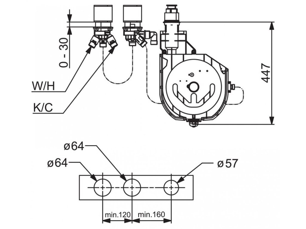 Podomietkové teleso HANSA Rollbox, pre 3-otvorové batérie