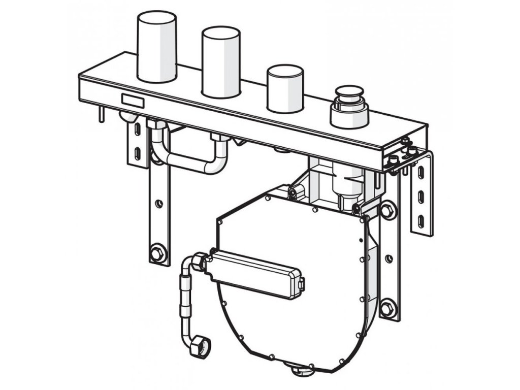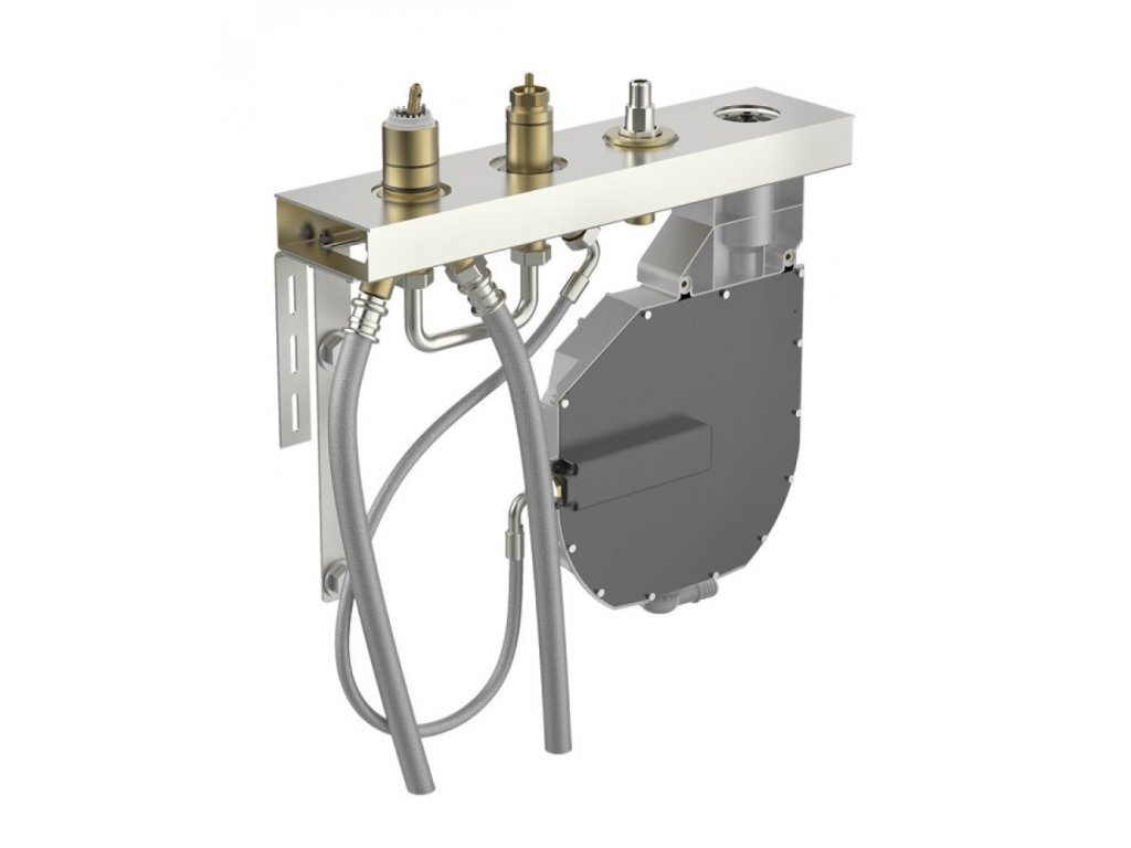 Základné podomietkové montážne teleso HANSACOMPACT pre sprchové a vaňové 4-otvorové vodovodné batérie, s otočným prepínačom.