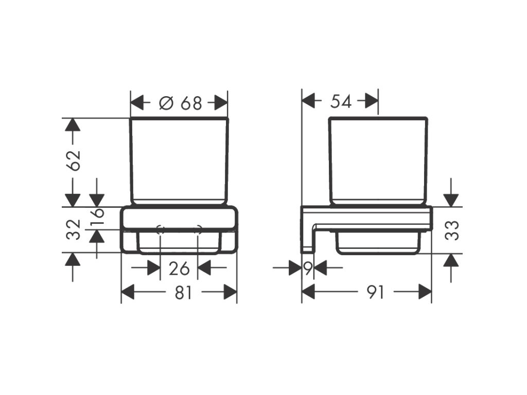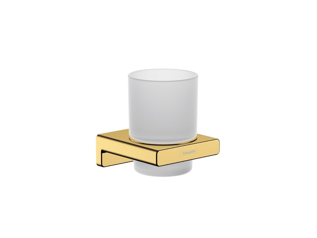 Pohár na kefky a pastu značky Hansgrohe. Súčasťou je nástenný držiak AddStoris.