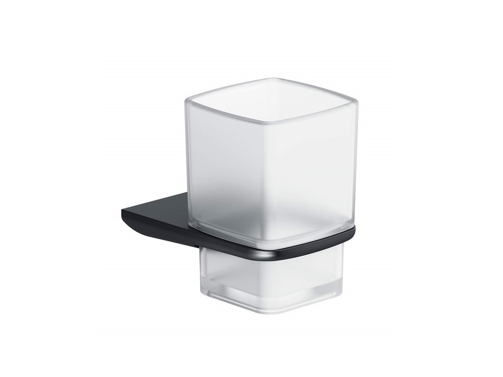 Pohár na zubné kefky RICO s držiakom, čierny kov-sklo