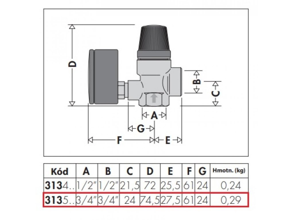 Poistný ventil MF 3/4" s tlakomerom, nastavenie tlaku 3 bar