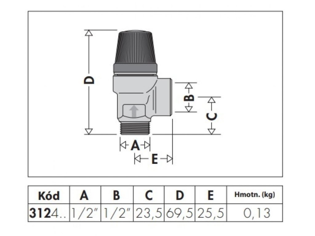 Poistný ventil MF 1/2" nastavenie tlaku 6 bar, PN 10, T=+5 až +110 °C