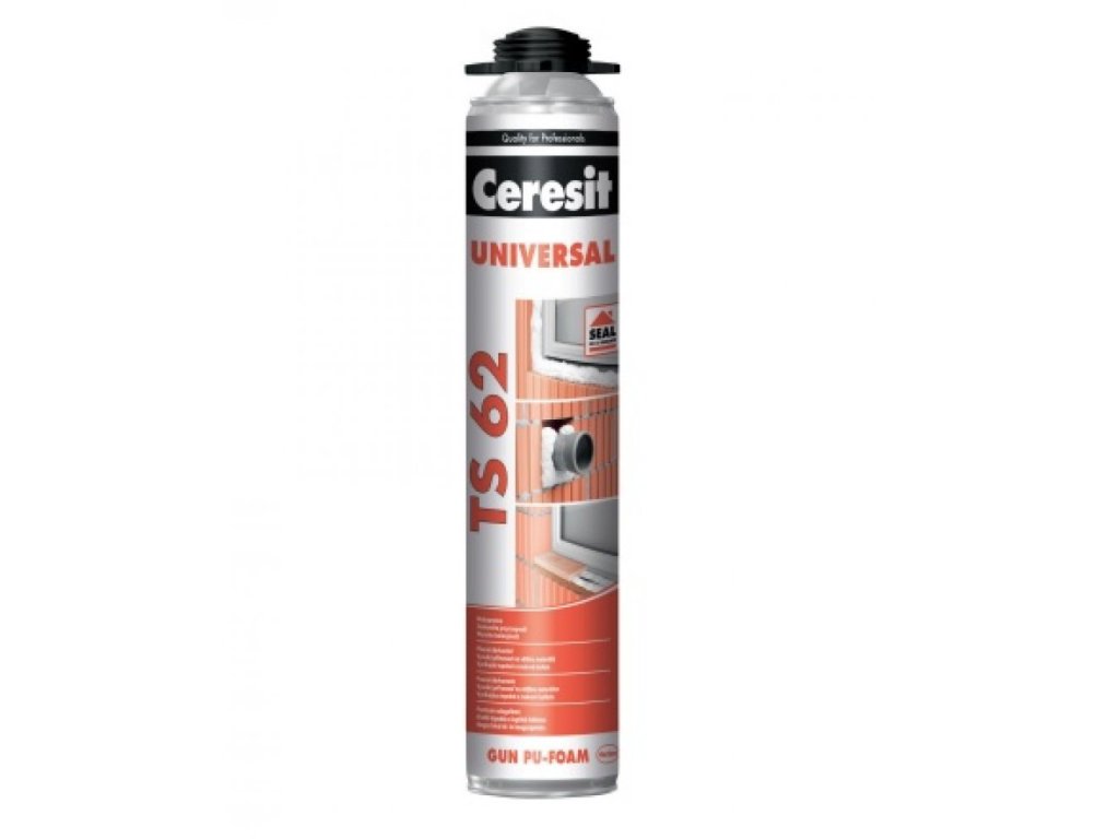 CERESIT PRO TS62 je jednozložková, pištoľová polyuretánová pena vytvrdzujúca vzdušnou vlhkosťou. Dóza je vybavená špeciálnym uzáverom pre naskrutkovanie aplikačnej pištole. Pena je samorozpínacia, po 20 minútach nelepivá. Celková doba potrebná na vytvrdenie je maximálne 24 hodín. Z jednej dózy je možné získať až 45 litrov vytvrdnutej peny, ale tento objem závisí od pracovných podmienok, predovšetkým od teploty, vlhkosti vzduchu a dostupného priestoru pre rozpínanie. Vytvrdnutá pena je zdravotne nezávadná.