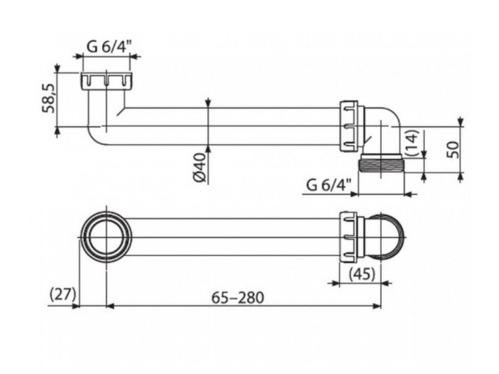Priestorovo úsporné dopojenie 6/4" pre drezové sifóny
