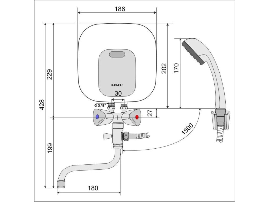 Set značky HAKL pozostáva z prietokového ohrievača, klasickej stenovej batérie a sprchového setu.