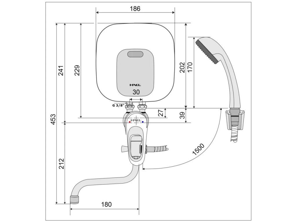 Prietokový ohrievač vody HAKL PL 5,5kW + vaňová batéria, príslušenstvo