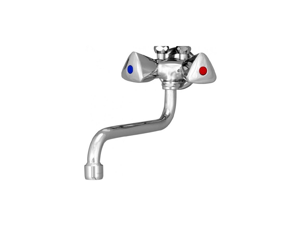 • klasická nízkotlaková stenová batéria pre ohrievače PM, s 20 cm dlhým výtokovým ramienkom tvaru "S".