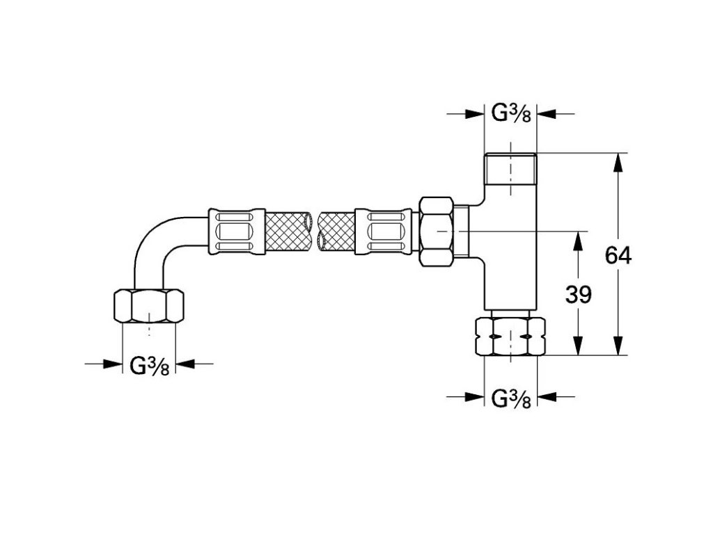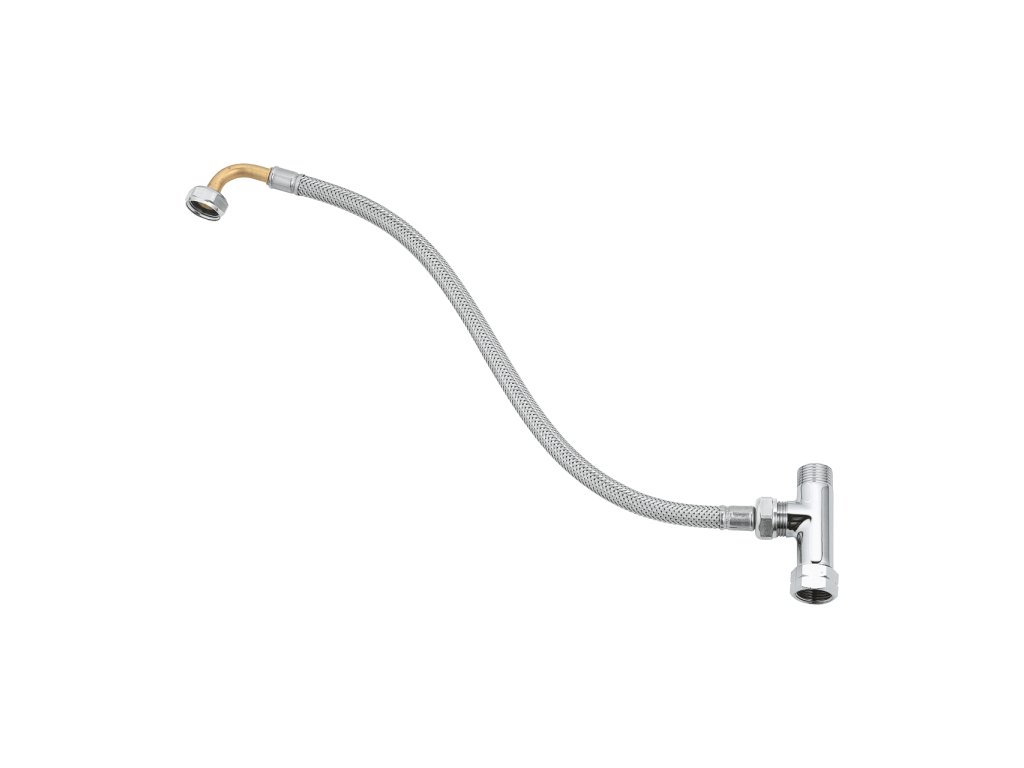 Súprava obsahuje: prípojnú maticu DN 10, T-kus, 2 výstupy s vonkajším závitom DN 10, flexi prípojné hadičky, prípojné matice.