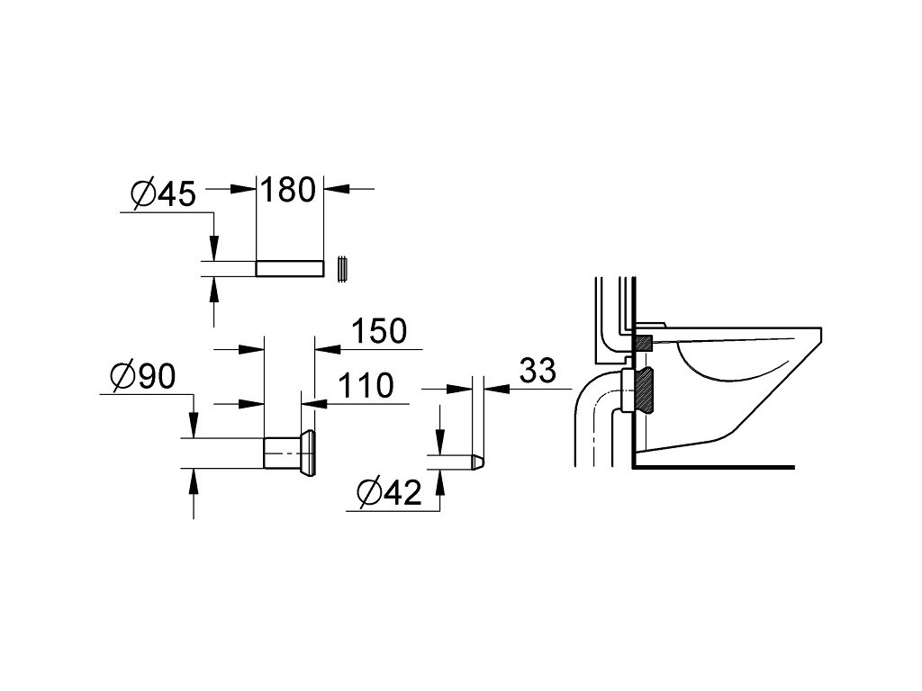 Prívodná a odvodná súprava na závesné WC, značky Grohe.