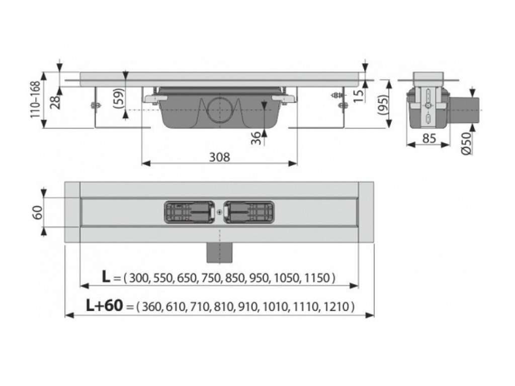 Sprchový žľab PROFESSIONAL s okrajom pre plný rošt - dĺžka 300mm