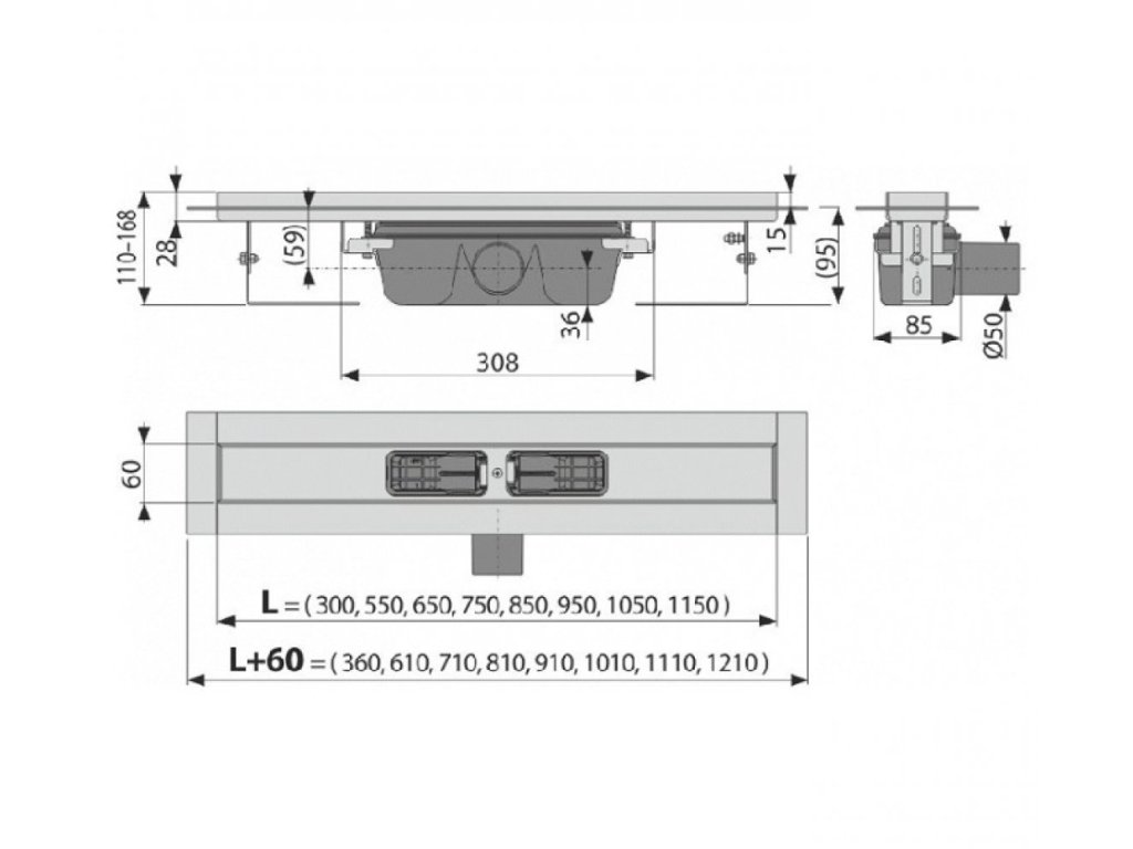 Sprchový žľab PROFESSIONAL s okrajom pre plný rošt - dĺžka 950mm