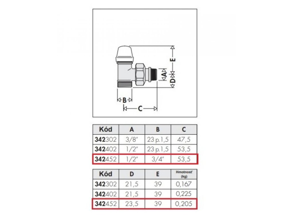 Radiátorová spojka rohová, regulačná 1/2"-3/4" - EUROKONUS
