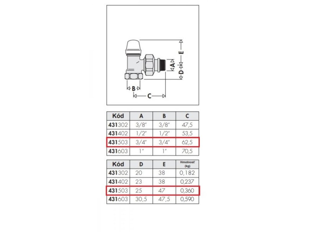 Radiátorová spojka rohová, regulačná 3/4" bez gumového tesnenia