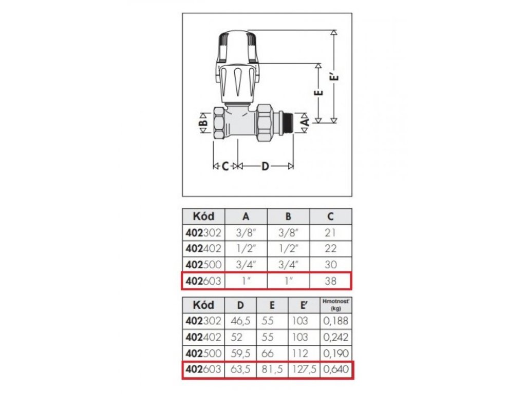 Ventil na radiátor priamy 1" bez tesnenia, aj pre termostat. hlavicu