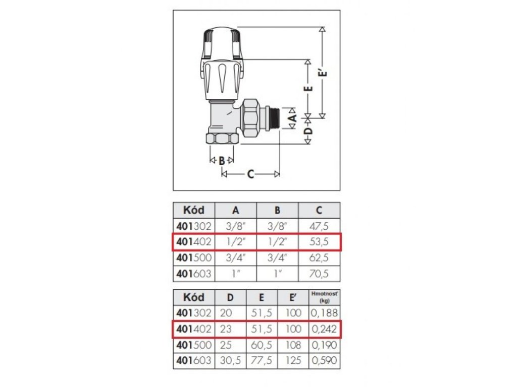 Rohový radiátorový ventil s možnosťou pripojenia termostatickej hlavice alebo termoelektrického servopohonu.