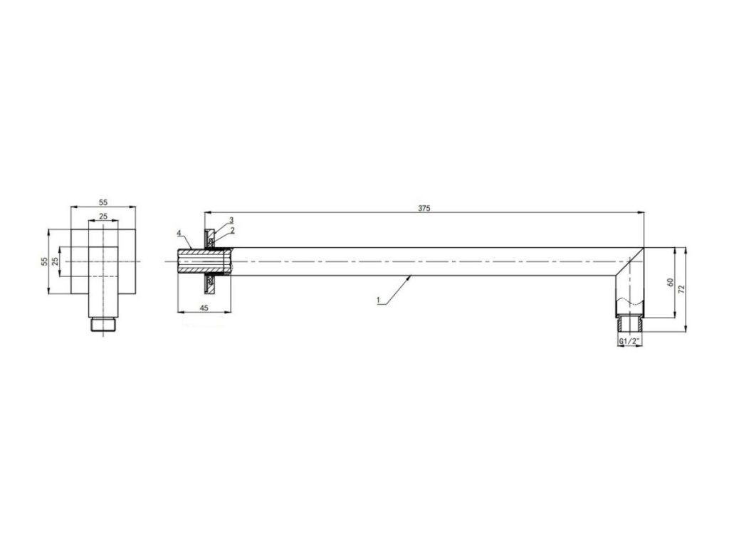Nástenné hranaté rameno k sprchovej hlavici, s čiernou povrchovou úpravou. Je zo série SQ BLACK značky HERZ