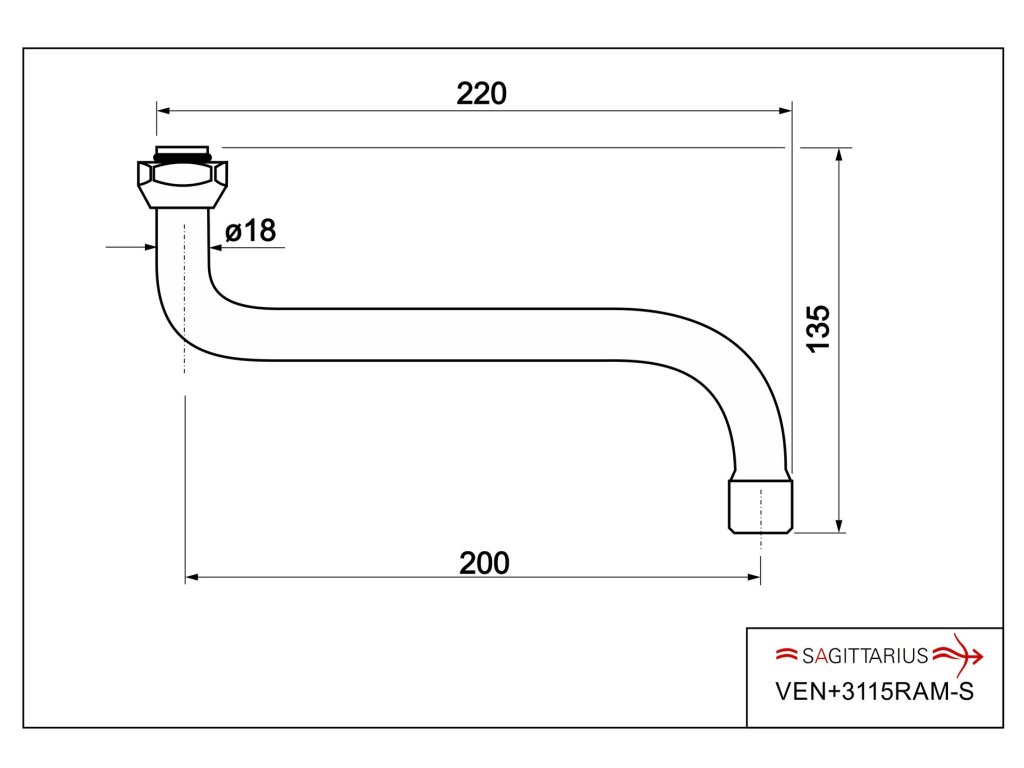 Náhradné výtokové ramienko tvaru "S" pre stenové batérie VENUS značky Sagittarius.