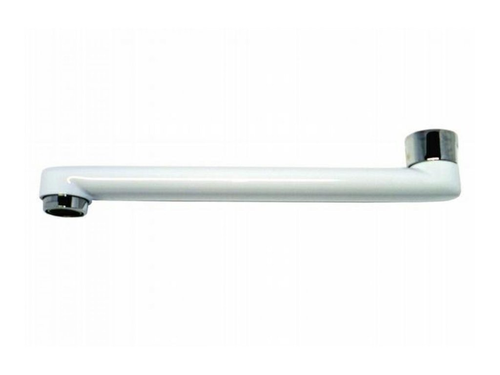 Biele rovné liate ploché výtokové ramienkok stenovej drezovej batérii, s celokovovým perlátorom, k vodovodným batériám PERLA (PRW 3115 a PRW 3115-100) značky Sagittarius.
